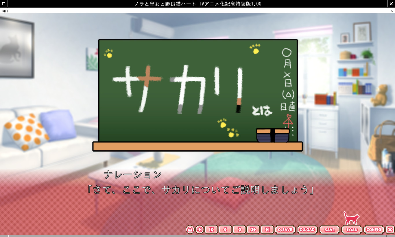 ノラと皇女と野良猫ハートの進捗は、OPを過ぎ、皇女様のチューをして猫になった所まで進捗が進んでおります。