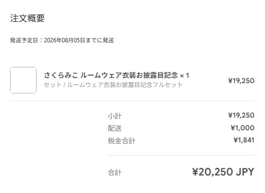 ルームウェア商品の到着は、2026/08上旬予定ですが、今年の配送状況から大幅に遅れるであろう予言。