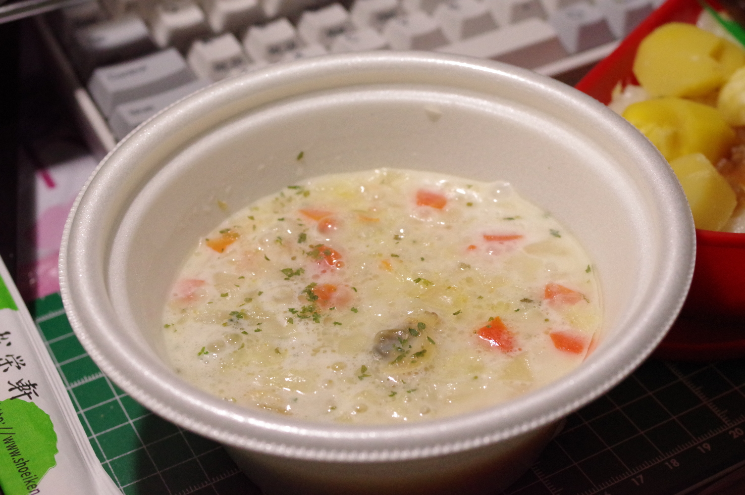 栗めしと、クラムチャウダー。